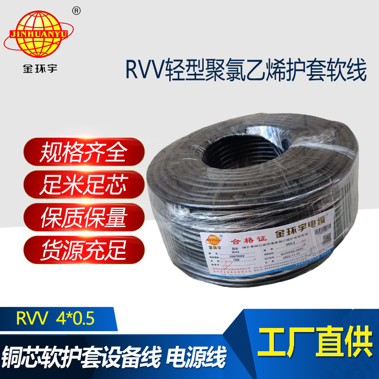 金環宇電纜 RVV 4X0.5平方 銅芯軟護套電纜 rvv電纜