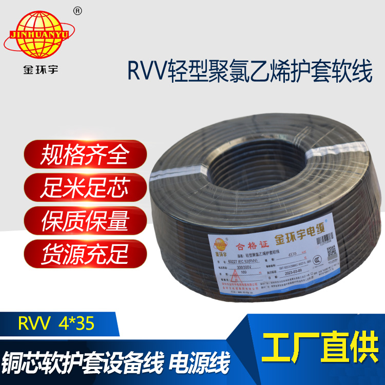 金環宇電纜 軟電纜RVV 4X35平方 護套線 深圳電源線