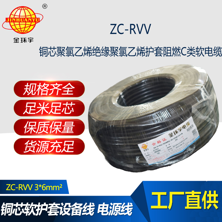 金環宇電線電纜 RVV系列電線 c級阻燃電纜ZC-RVV 3*6軟護套電纜