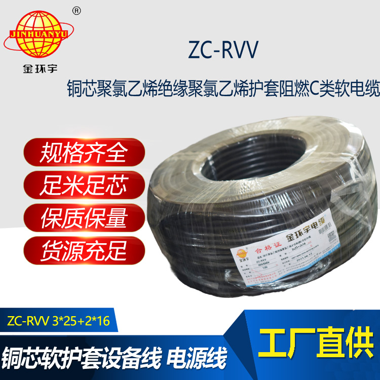 金環宇電線電纜 c級阻燃rvv電纜ZC-RVV 3X25+2X16平方 rvv護套線