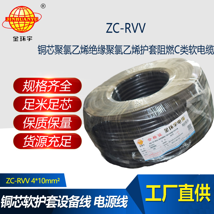 金環宇電線電纜 rvv電纜 ZC-RVV4芯10平方 阻燃軟護套電纜線