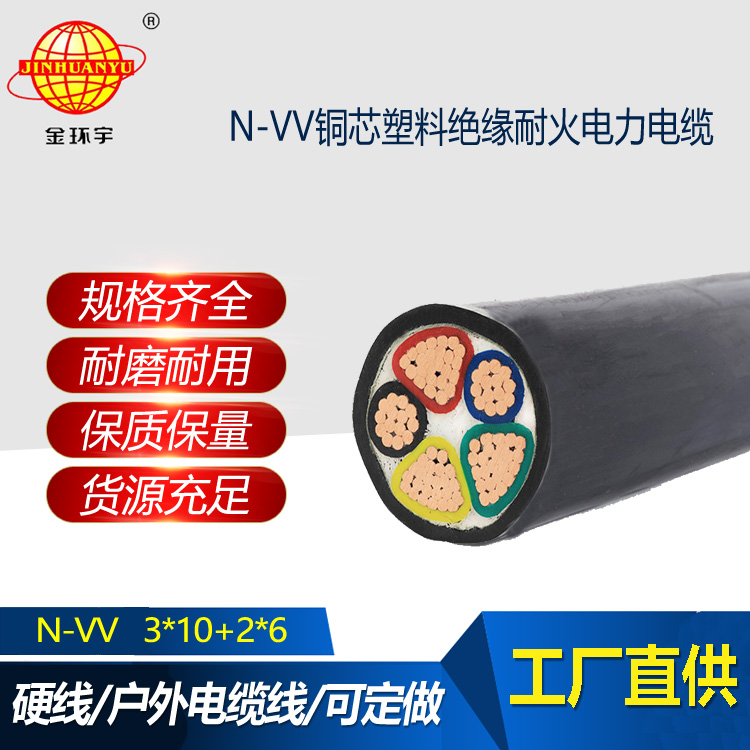 金環(huán)宇電線電纜 N-VV 3X10+2X6平方 三相五線電纜 深圳低壓耐火電纜