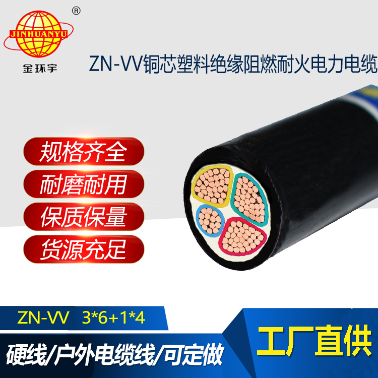 金環宇電纜 ZN-VV 3X6+1X4平方 阻燃耐火電纜 vv電纜廠家