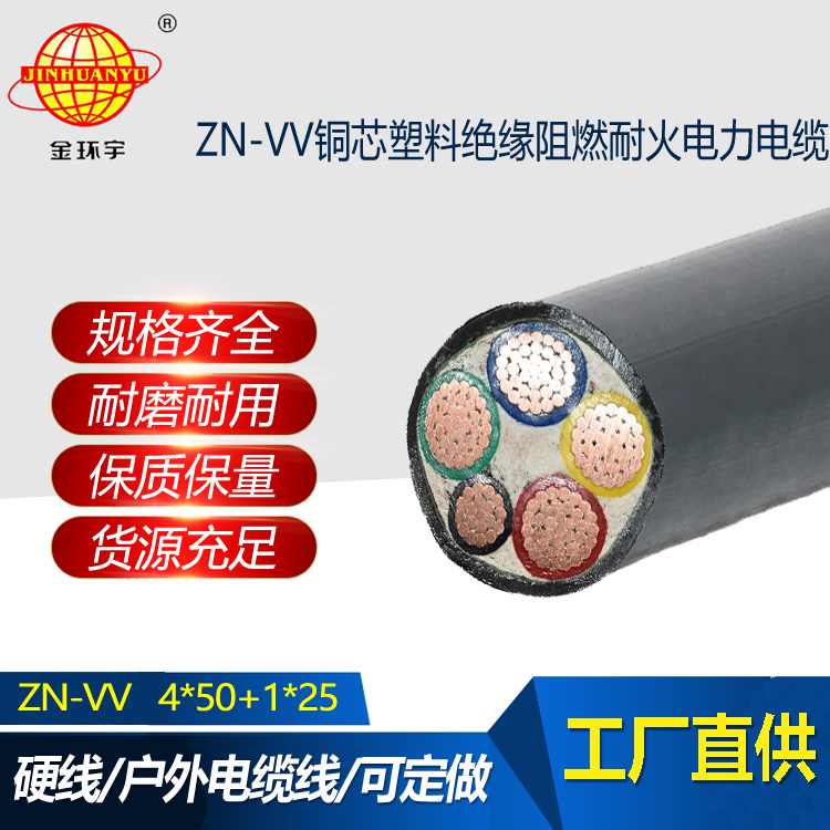 金環宇電纜 阻燃耐火電纜ZN-VV 4X50+1X25平方 電力電纜vv