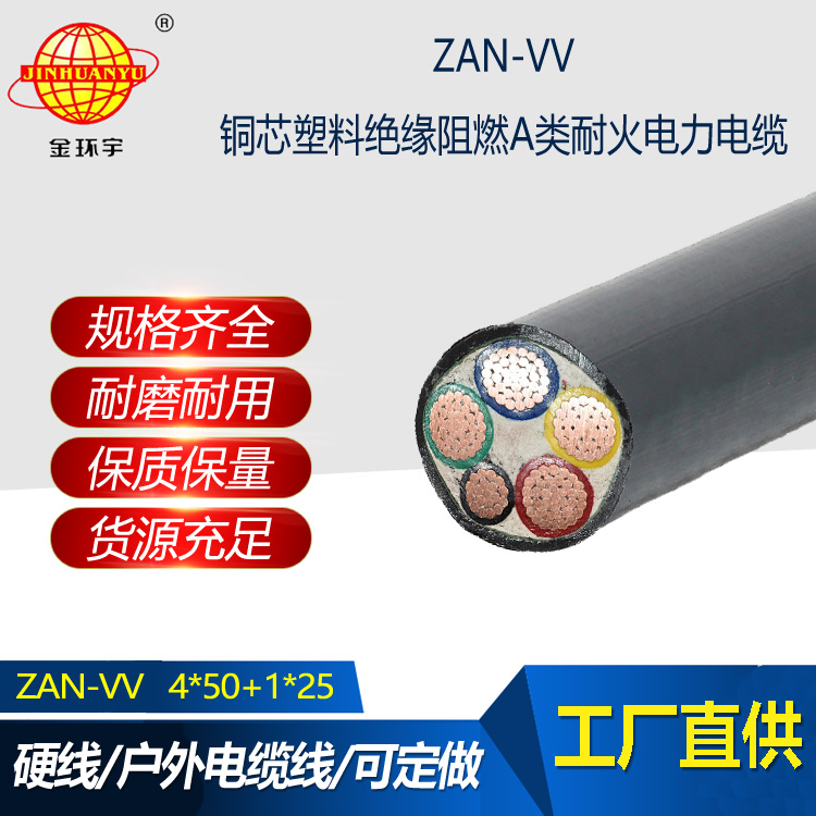 金環宇電纜 ZAN-VV 4X50+1X25阻燃a類耐火電力電纜四相五線