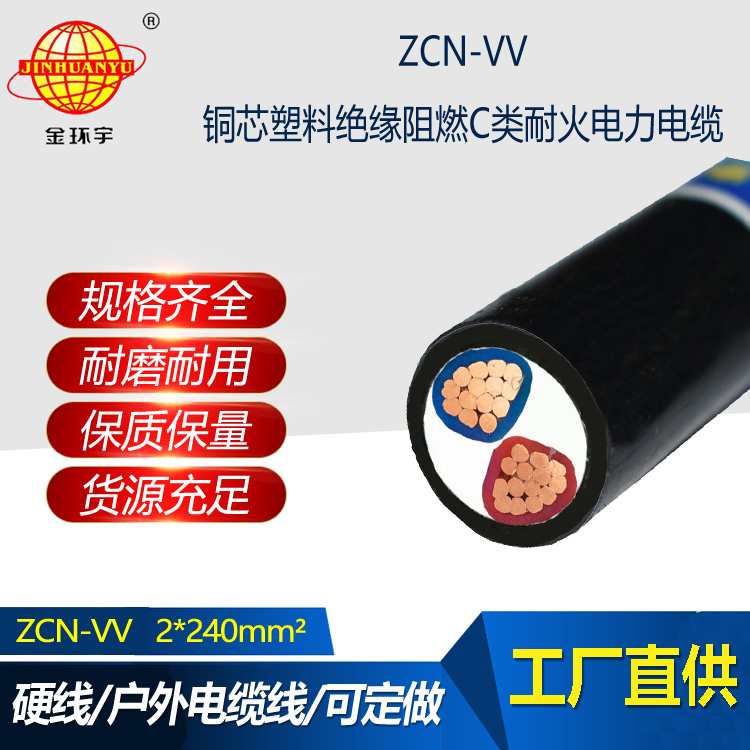 金環宇電纜 ZCN-VV 2X240耐火電纜 C類阻燃電纜vv電力電纜