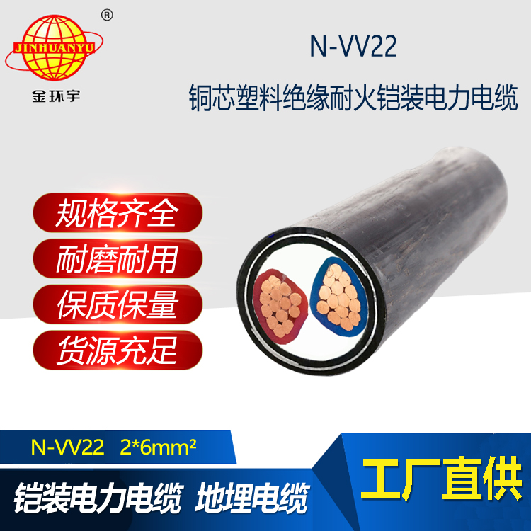 金環宇電纜 耐火電線電纜N-VV22-2X6平方 深圳鎧裝電纜