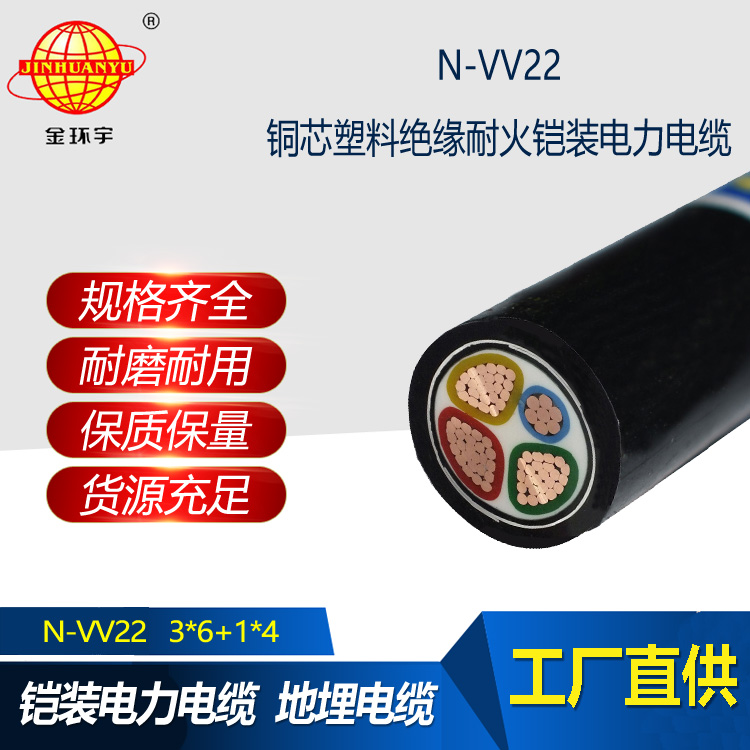 金環宇電纜 vv22鎧裝電纜N-VV22-3X6+1X4平方 耐火電線電纜