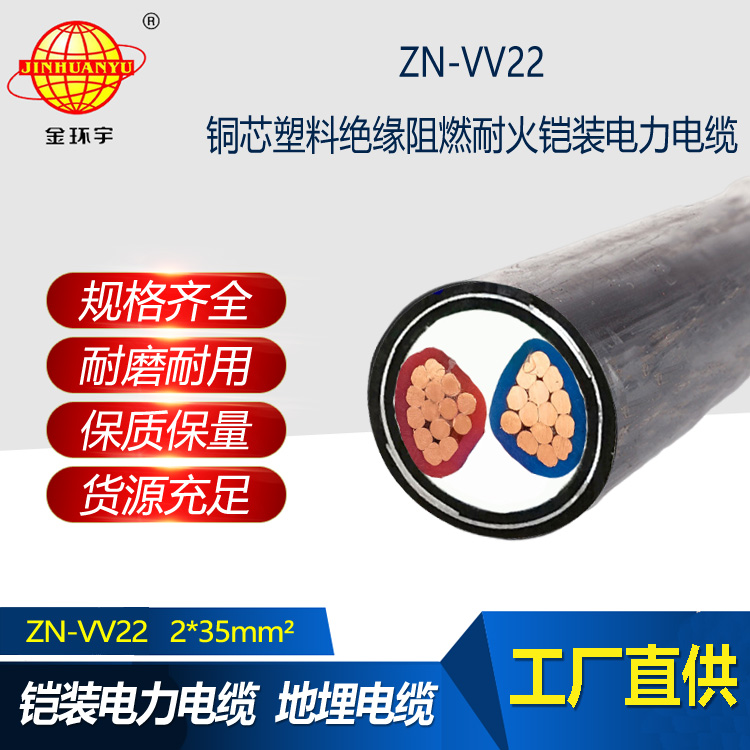 金環宇電線電纜 vv22鎧裝電力電纜ZN-VV22-2X35 阻燃耐火電線電纜