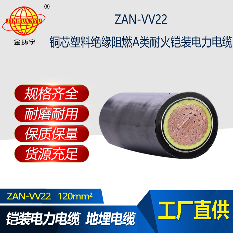 金環(huán)宇電線電纜 a級(jí)阻燃耐火鎧裝交聯(lián)電力電纜ZAN-VV22-120平方