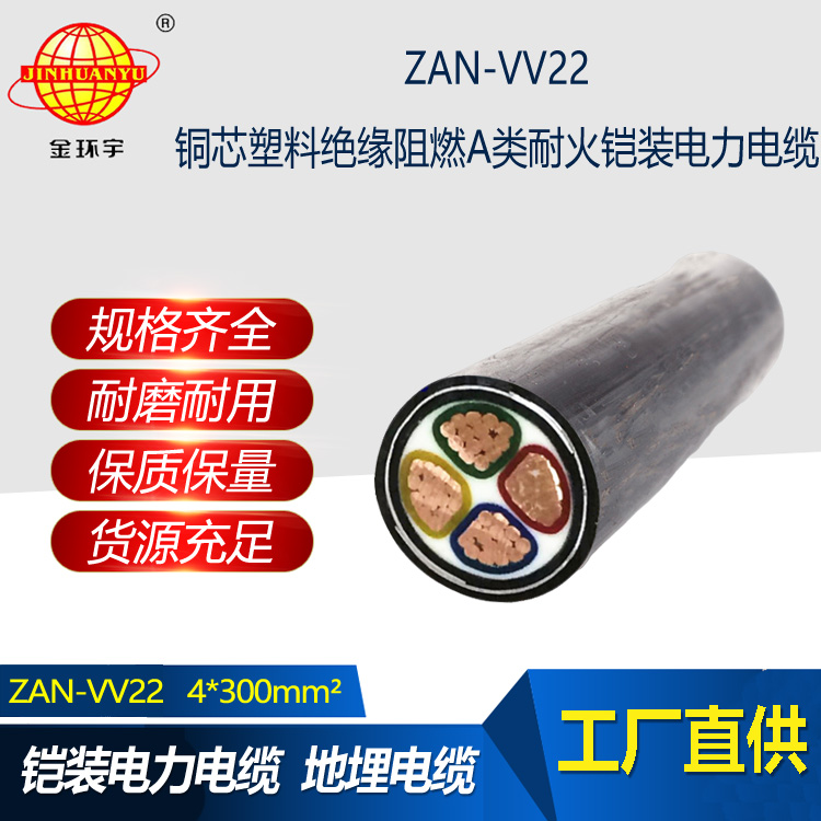 金環宇電線電纜 a級阻燃耐火電力電纜ZAN-VV22-4x300平方 鎧裝電纜