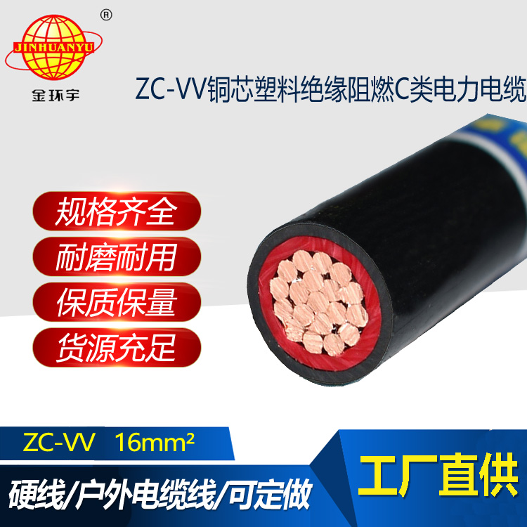 金環宇電線電纜 ZC-VV 16平方 單芯電力電纜 c類阻燃電纜vv