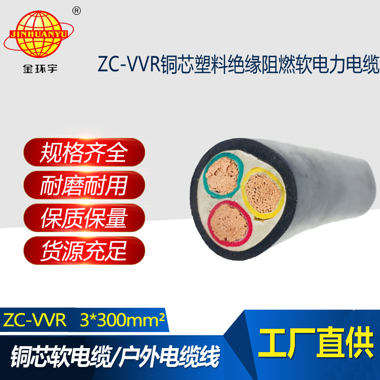 金環宇電纜 ZC-VVR 3X300平方 深圳阻燃電力電纜 vvr軟電纜