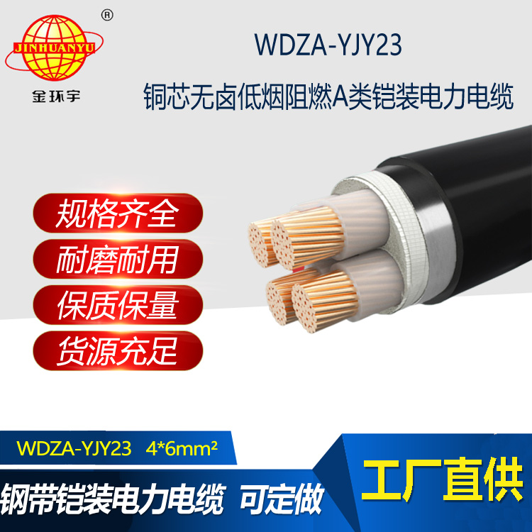 金環(huán)宇電線電纜 深圳低煙無鹵a級阻燃電纜報價WDZA-YJY23-4X6鎧裝電力電纜