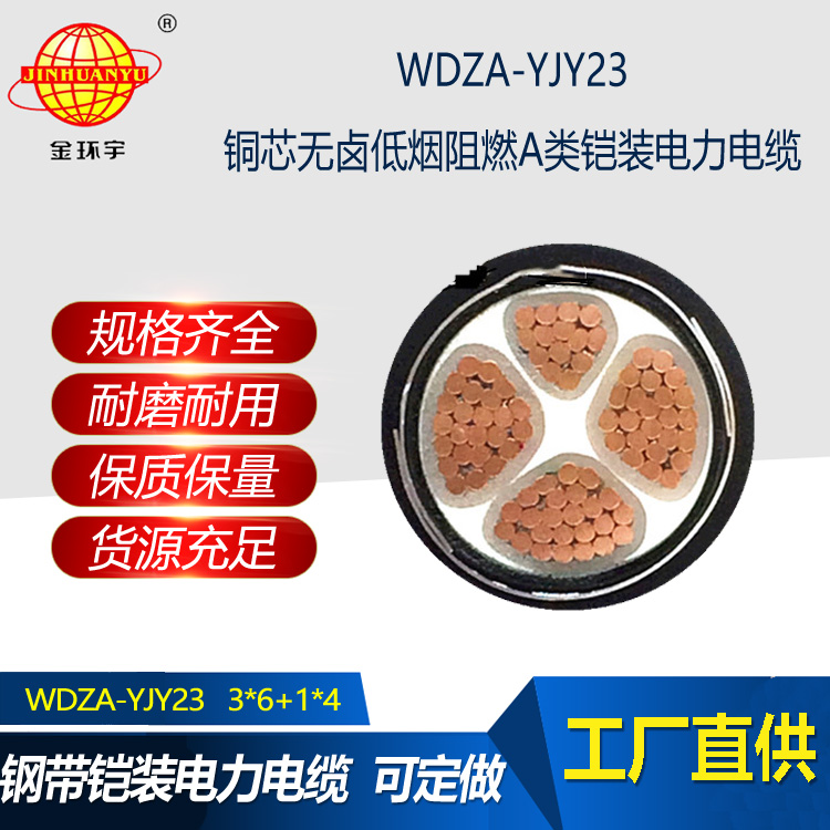 WDZA-YJY23低煙無鹵阻燃A類鎧裝電力電纜 本產品適用于交流額定電壓0.6/1KV及以下的地鐵、高層建筑、商場、劇院、發電站、化學工廠、城市廣場及其他公用事業等對電纜阻燃特性要求高的場合。