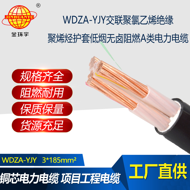 金環宇電線電纜 銅芯WDZA-YJY 3X185平方 低煙無鹵電纜 阻燃電力電纜