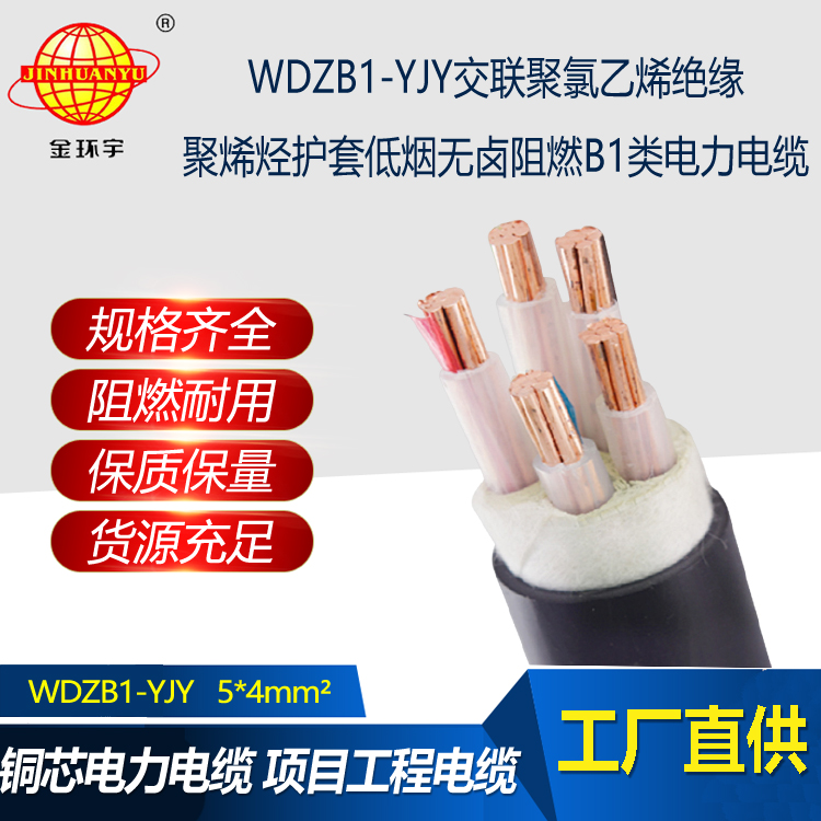 金環宇電線電纜 5芯電力電纜WDZB1-YJY-5x4平方 低煙無鹵B1類阻燃電纜