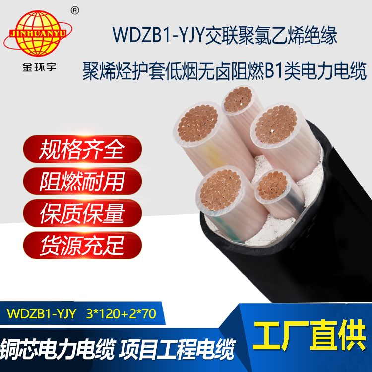 金環(huán)宇電線電纜 低煙無鹵阻燃電纜廠WDZB1-YJY 3x120+2x70銅芯交聯(lián)電纜