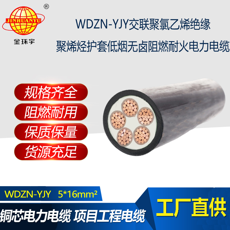 金環宇電線電纜 WDZN-YJY 5X16平方 低煙無鹵阻燃耐火電力電纜