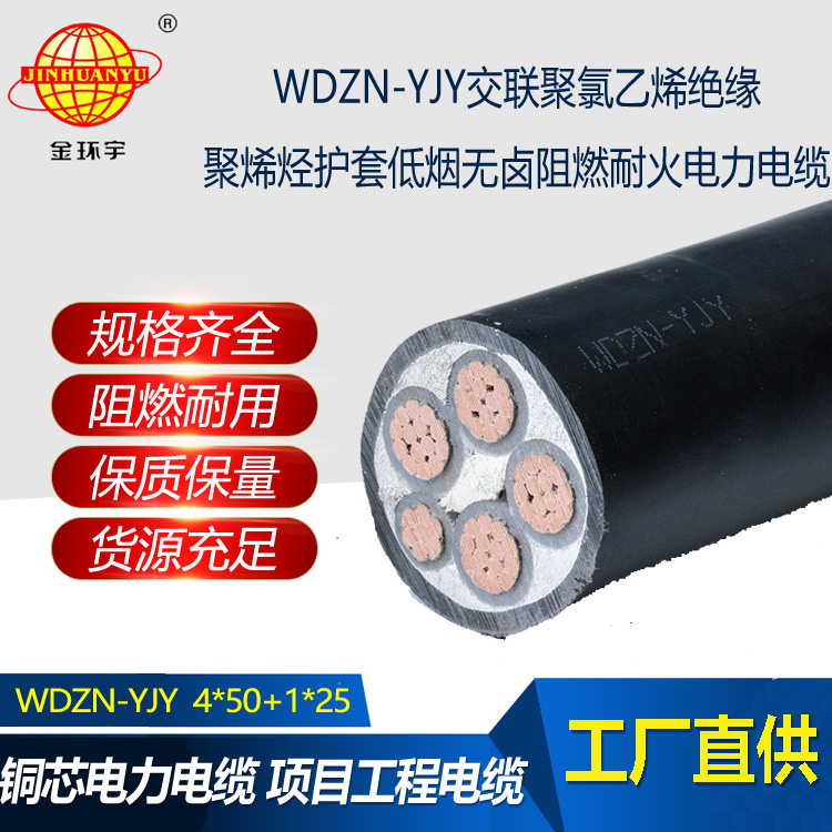 金環宇電線電纜 銅芯交聯電纜 4+1芯WDZN-YJY4X50+1X25低煙無鹵阻燃耐火