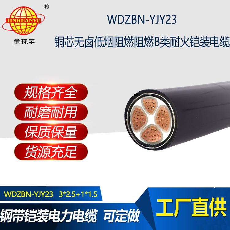 金環宇電線電纜 無鹵低煙阻燃耐火電纜 WDZBN-YJY23-3x2.5+1x1.5平方 鎧裝電纜