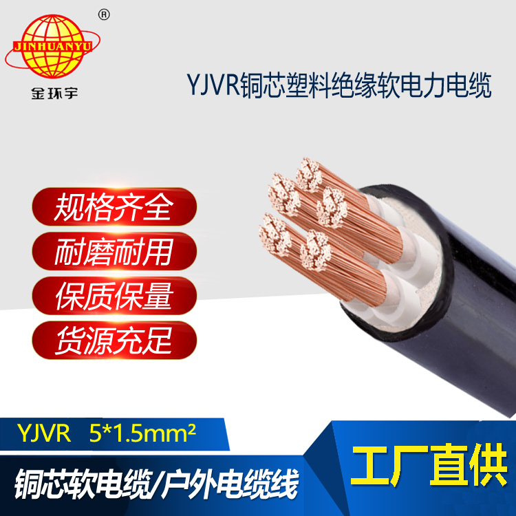 金環宇電線電纜 YJVR 5X1.5平方 低壓交聯電力電纜 深圳yjvr電纜