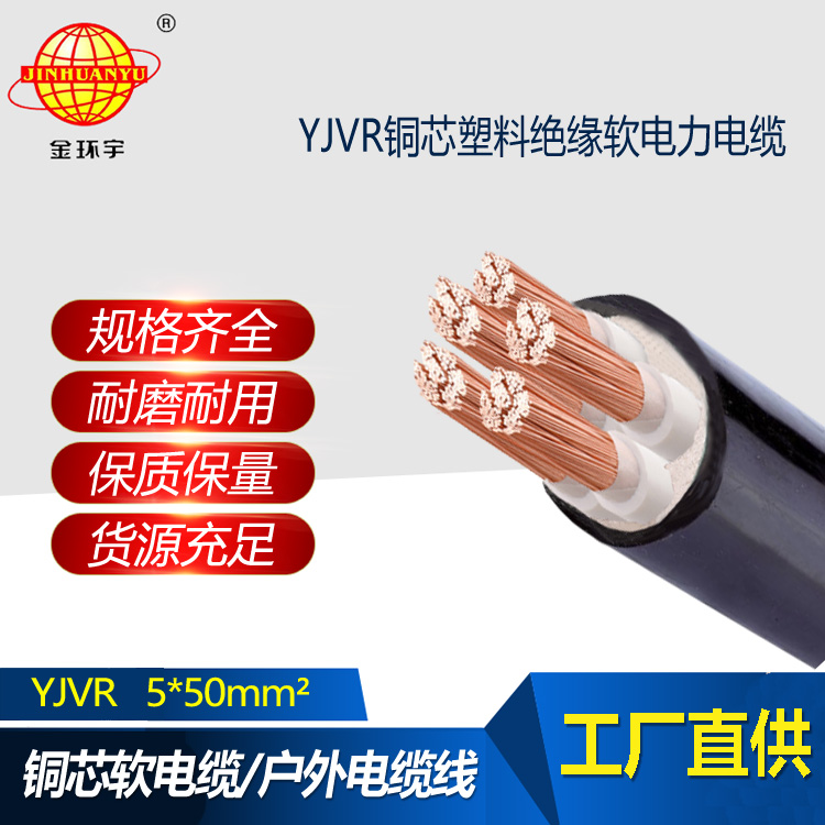 金環宇電線電纜 五芯軟電纜yjvr 銅芯電力電力YJVR 5X50平方
