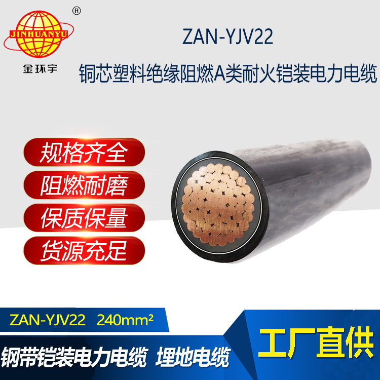 金環宇電線電纜 鎧裝銅芯電纜ZAN-YJV22-240平方 深圳阻燃耐火電纜廠家