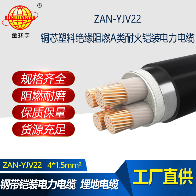ZAN-YJV22電纜:銅芯交聯(lián)聚乙烯絕緣聚氯乙烯護套鋼帶鎧裝A類阻燃耐火型電力電纜,