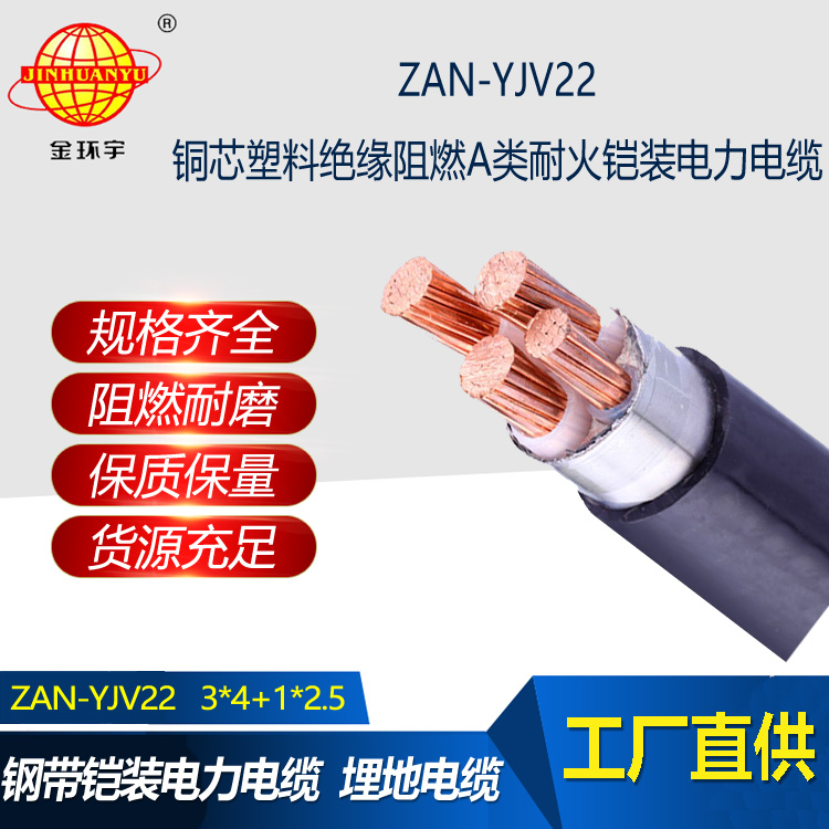 ZAN-YJV22電纜:銅芯交聯聚乙烯絕緣聚氯乙烯護套鋼帶鎧裝A類阻燃耐火型電力電纜,