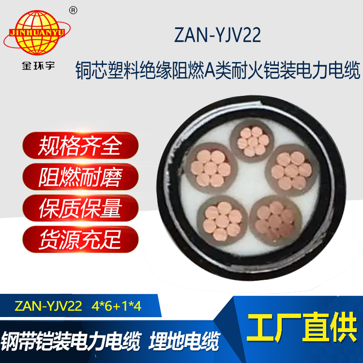 金環宇電線電纜 a類阻燃耐火鎧裝電纜ZAN-YJV22-4X6+1X4平方 深圳yjv22電纜