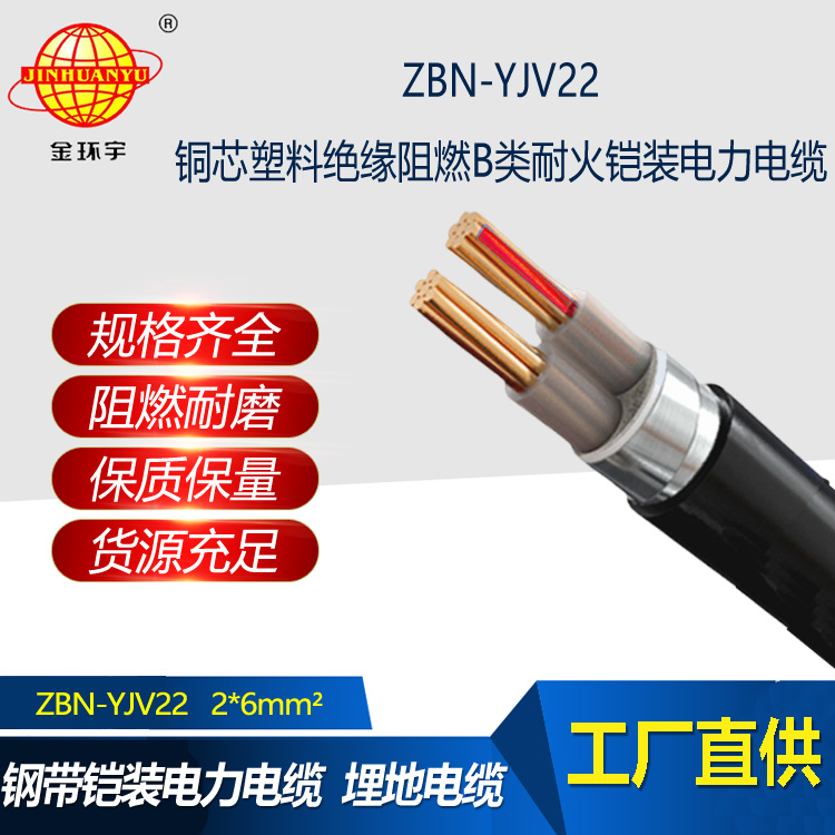 金環宇 深圳阻燃耐火電纜ZBN-YJV22-2X6平方 yjv22鎧裝電纜