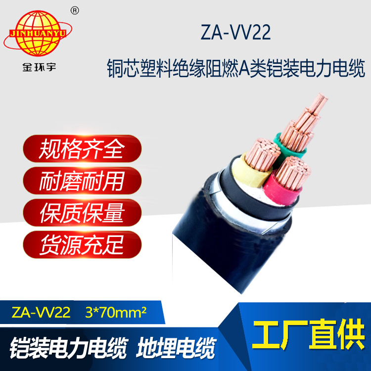 金環宇電線電纜 ZA-VV22-3X70平方 深圳vv22電力電纜阻燃鎧裝電纜