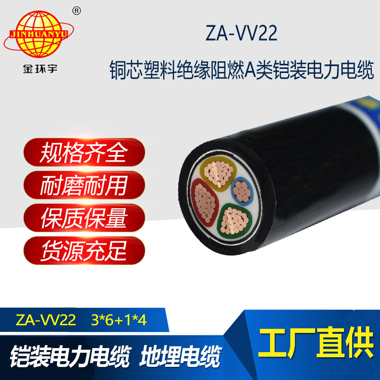 金環宇電纜 阻燃電力電纜ZA-VV22-3X6+1X4平方 vv22鎧裝電纜