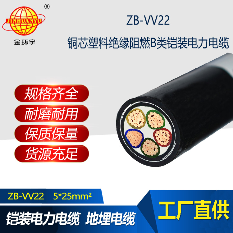 金環宇電線電纜 交聯鎧裝阻燃電線電纜ZB-VV22-5X25平方電力電纜廠