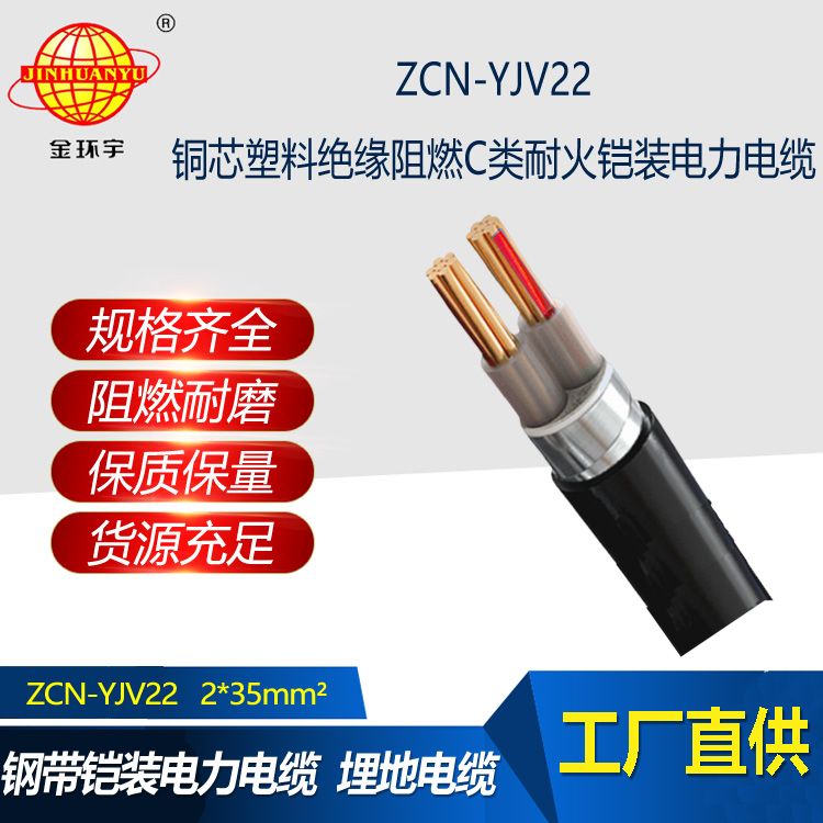 ZCN-YJV22電纜:銅導體C級阻燃耐火交聯聚乙烯絕緣聚氯乙烯內護層鋼帶鎧裝聚氯乙烯外護套 力電纜。C級阻燃(ZC)、耐火(N)電力電纜、交聯聚乙烯絕緣(YJ)、聚氯乙烯護套(V)、鋼帶鎧裝(22)