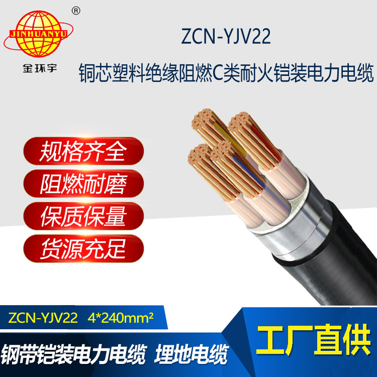 金環宇電線電纜 ZCN-YJV22-4X240電力電纜yjv22鎧裝電纜 阻燃耐火電纜